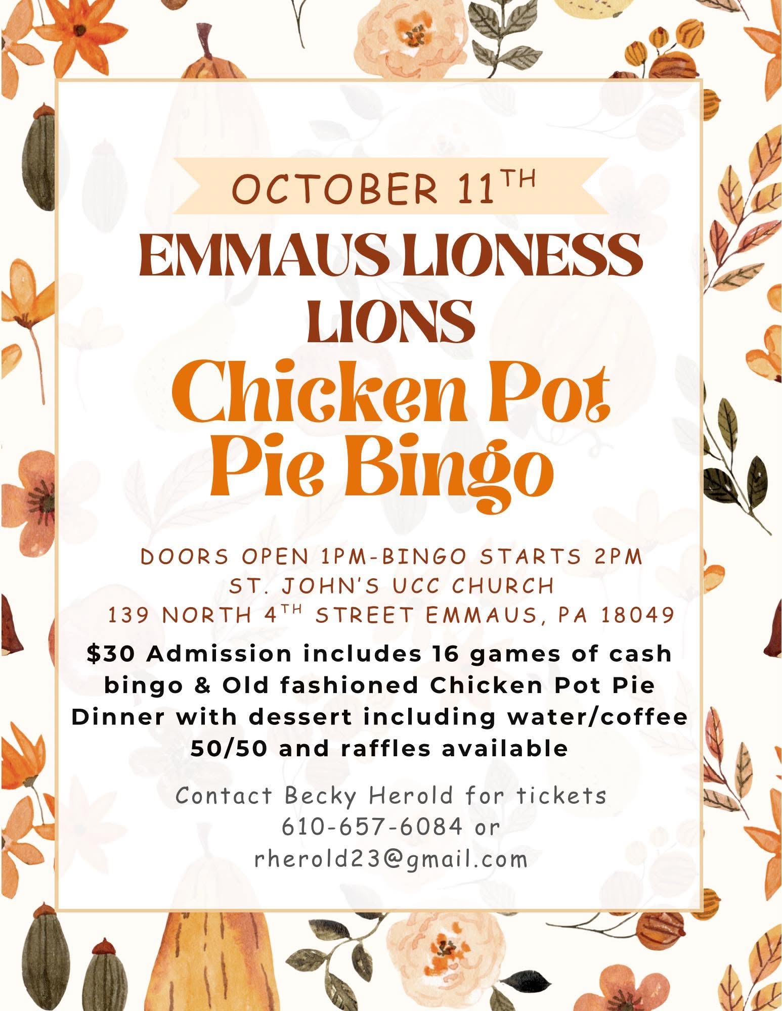 Emmaus Lioness Lions Pot Pie Bingo - 10/11/2025