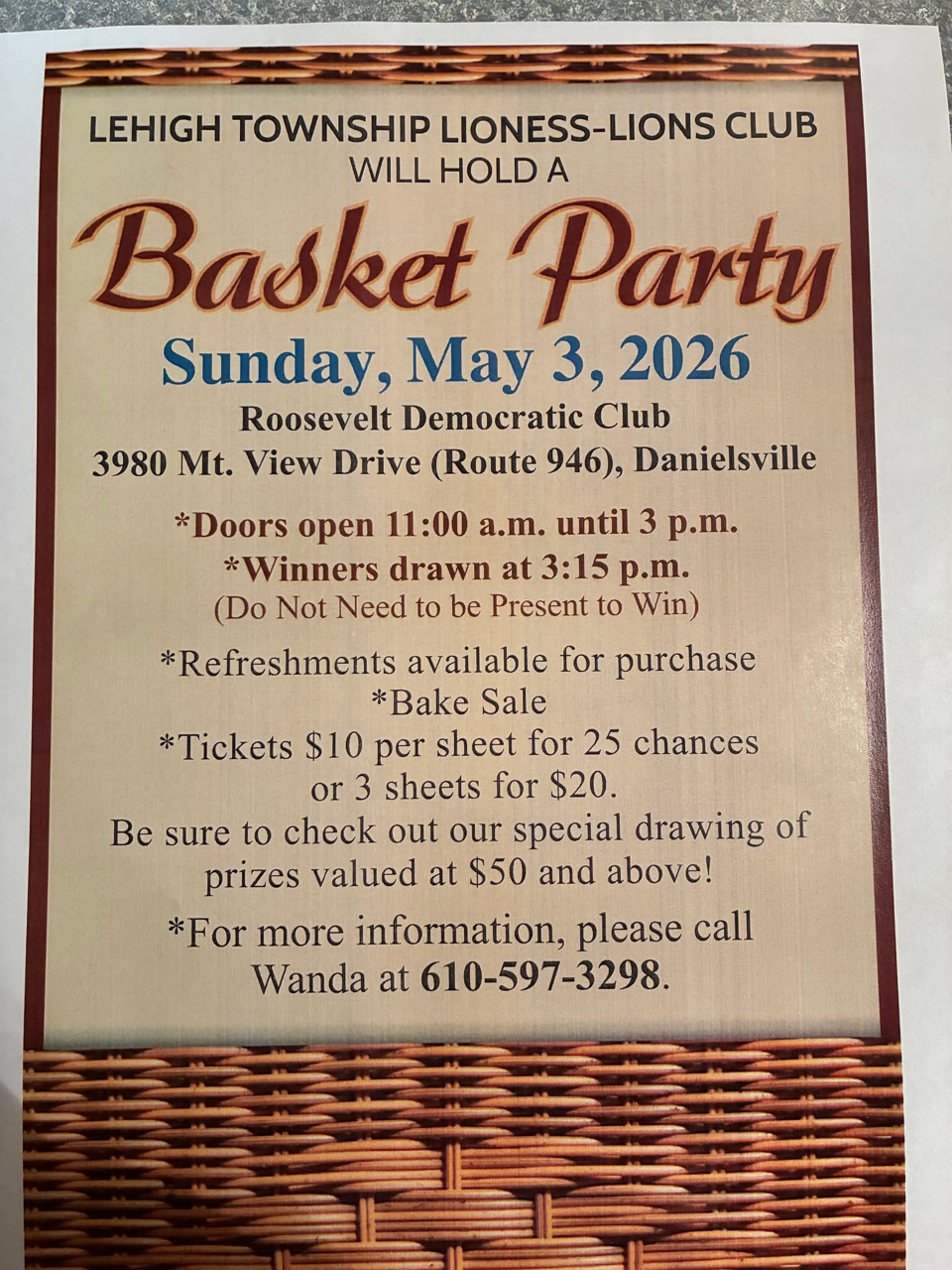 Lehigh Township LLC Basket Party - 05/03/2026