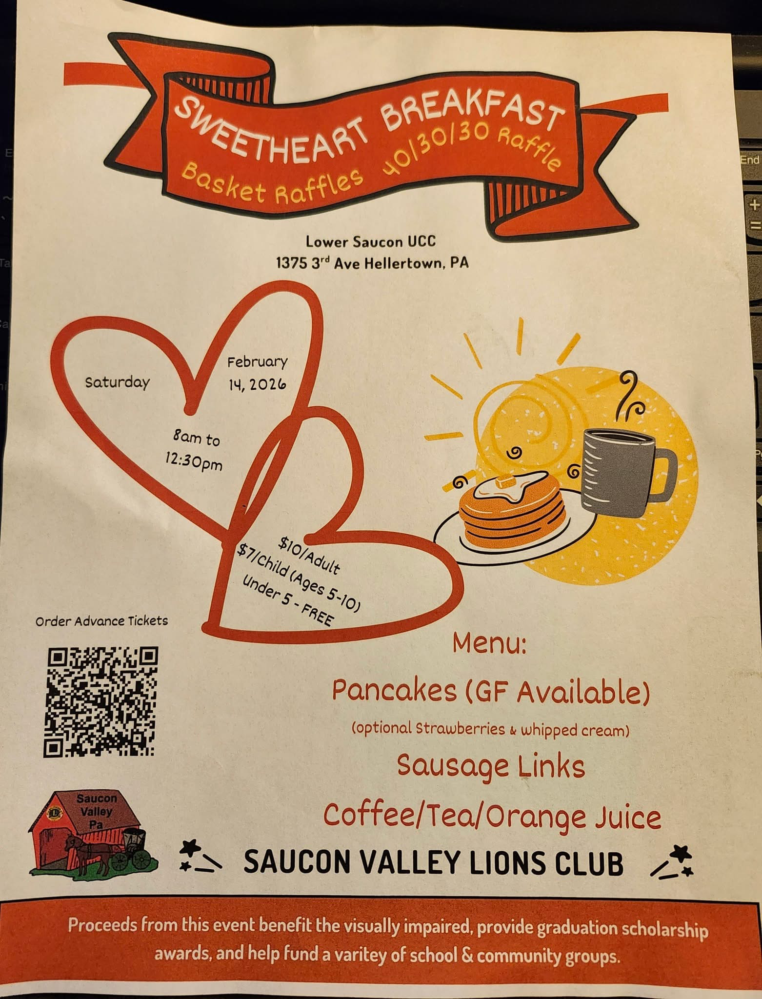 Saucon Valley Sweetheart Breakfast - 02/14/2026